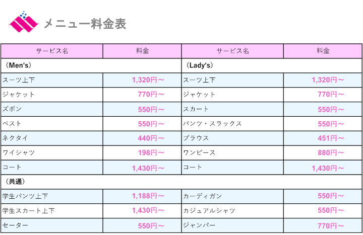 ※上記のメニューは一部となっております。上記以外のメニューはお気軽にお問い合わせください。